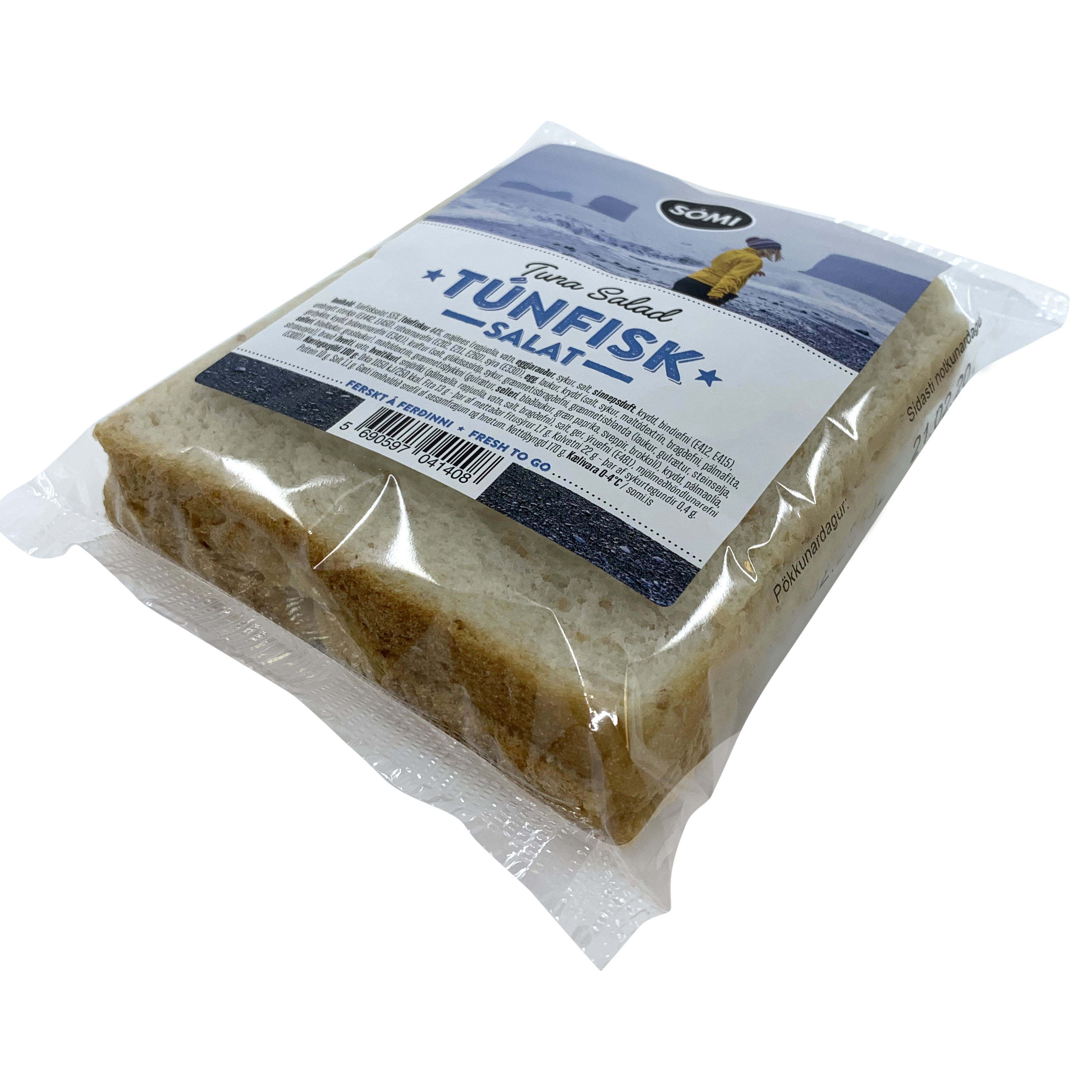 "description": "Túnfisksalat 55% [TÚNFISKUR 44%, majónes (repjuolía, vatn, EGGJARAUÐUR, sykur, salt, SINNEPSDUFT, krydd, bindiefni (E412, E415), umbreytt sterkja (E1442, E1450), rotvarnarefni (E202, E211, E260), sýra (E330)), EGG, laukur, krydd (salt, sykur, maltódextrín, bragðefni, pálmafita, gerþykkni, krydd, þráavarnarefni (E341)), kraftur (salt, glúkósasíróp, sykur, grænmetisbragðefni, grænmetisblanda (laukur, gulrætur, steinselja, SELLERÍ, blaðlaukur, graslaukur), maltódextrín, grænmetisþykkni (gulrætur, SELLERÍ, blaðlaukur, græn paprika, sveppir, brokkolí), krydd, pálmaolía, sítrónusýra)], brauð (HVEITI, vatn, hveitikurl, smjörlíki (pálmaolía, repjuolía, vatn, salt, bragðefni), salt, ger, ýruefni (E481), mjölmeðhöndlunarefni (E300)). ",