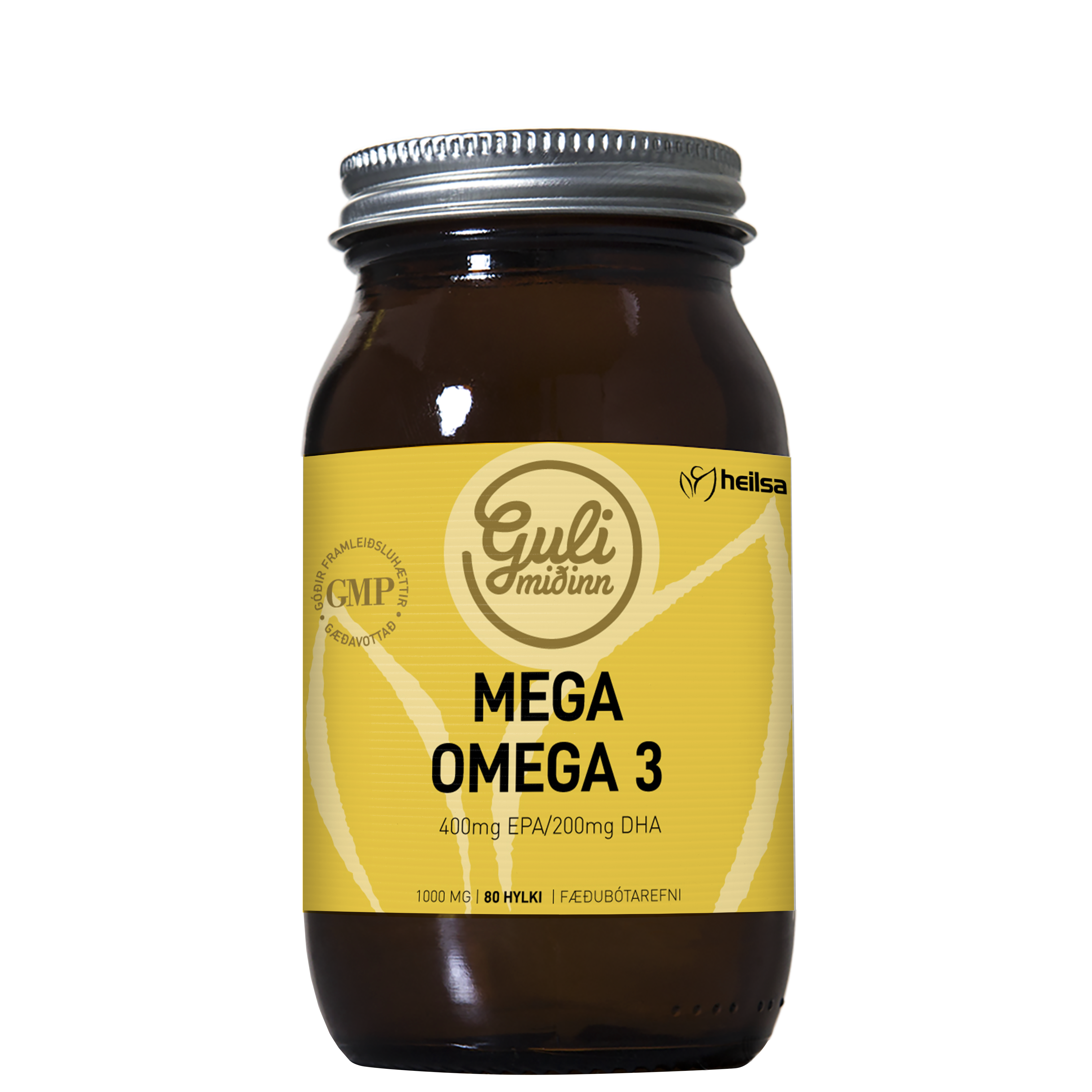 "descriptionDetail": "Mega Omega 3 í Gula miðanum er auðugt af omega 3 fitusýrum bæði EPA og DHA. Omega 3 fitusýrur geta unnið gegn bólgum, verndað hjarta- og æðakerfi, heila og taugakerfi, húð, hár og liði. Omega 3 fitusýrur er mikilvægar hverri frumu og nauðsynlegt að fá þær úr mataræði og/eða bætiefnum.",