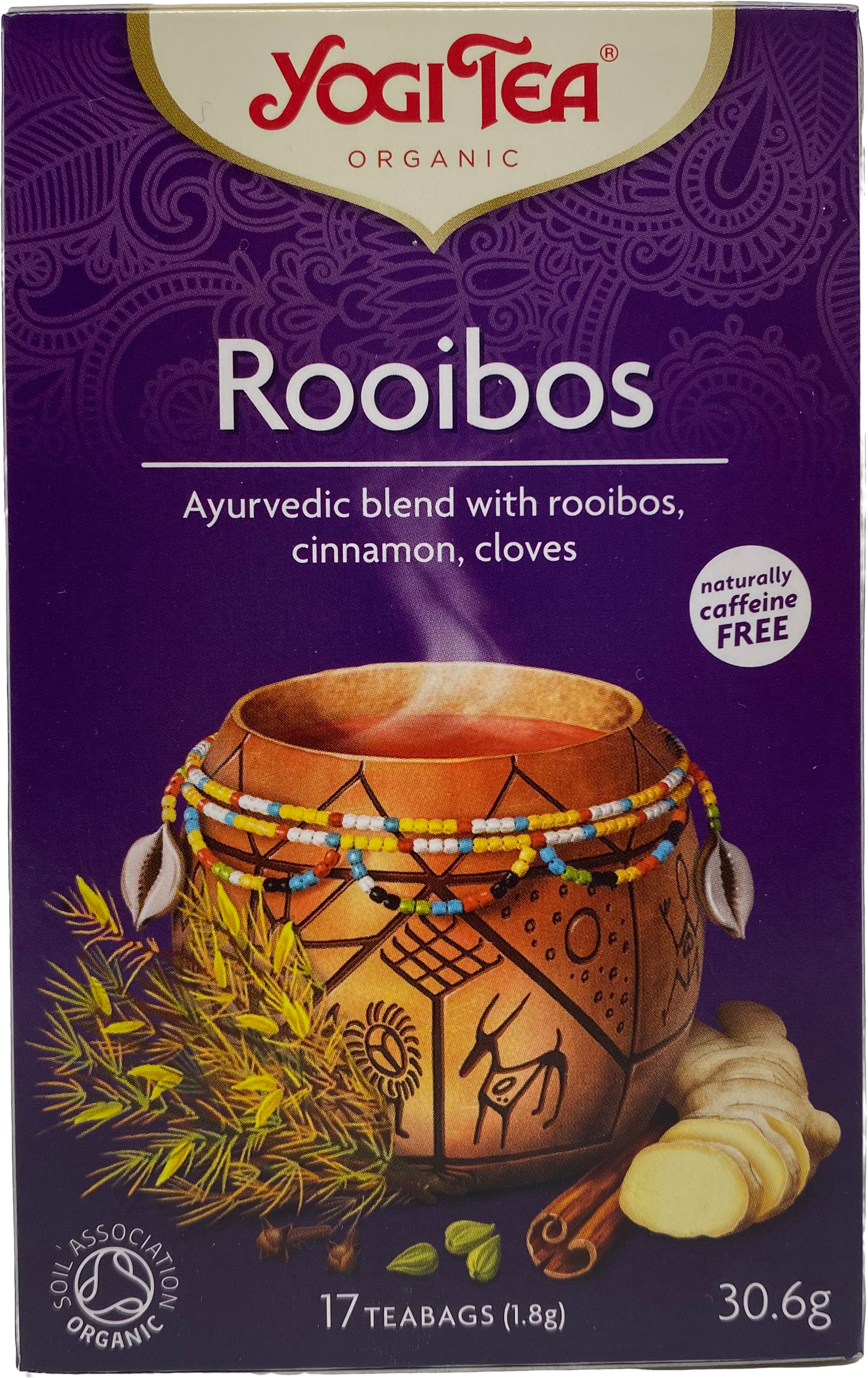 "description": "Einstök blanda af lífrænt ræktuðum jurtum; rauðrunni (70%), kanill, engifer, karob, ristaður kaffifífill, kardimommur, negull, kanilþykkni, svartur pipar, engifer olía, kardimommu olía, vanillu þykkni.",