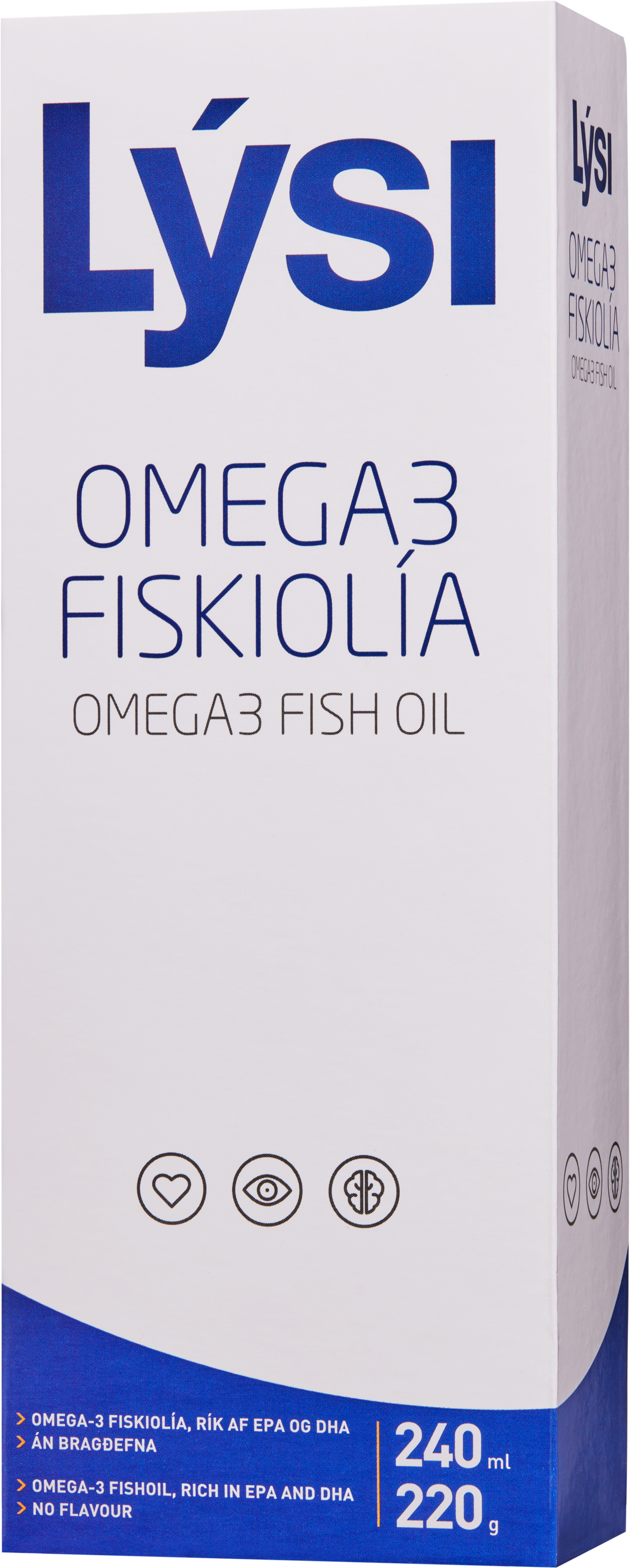 "descriptionDetail": "Omega-3 fiskiolía er framleidd úr fiskitegundum sem eru auðugar af Omega-3 fitusýrum. Omega-3 frá LÝSI inniheldur ekki vítamín og má því taka með þorskalýsi og öðrum tegundum lýsis.\n\nÁhrif Omega-3 fitusýra, einkum EPA og DHA, hafa verið rannsökuð ítarlega og niðurstöður rannsóknanna birst í vísindaritum víða um heim. Jafnframt er oft fjallað um jákvæða eiginleika þeirra í fjölmiðlum.",