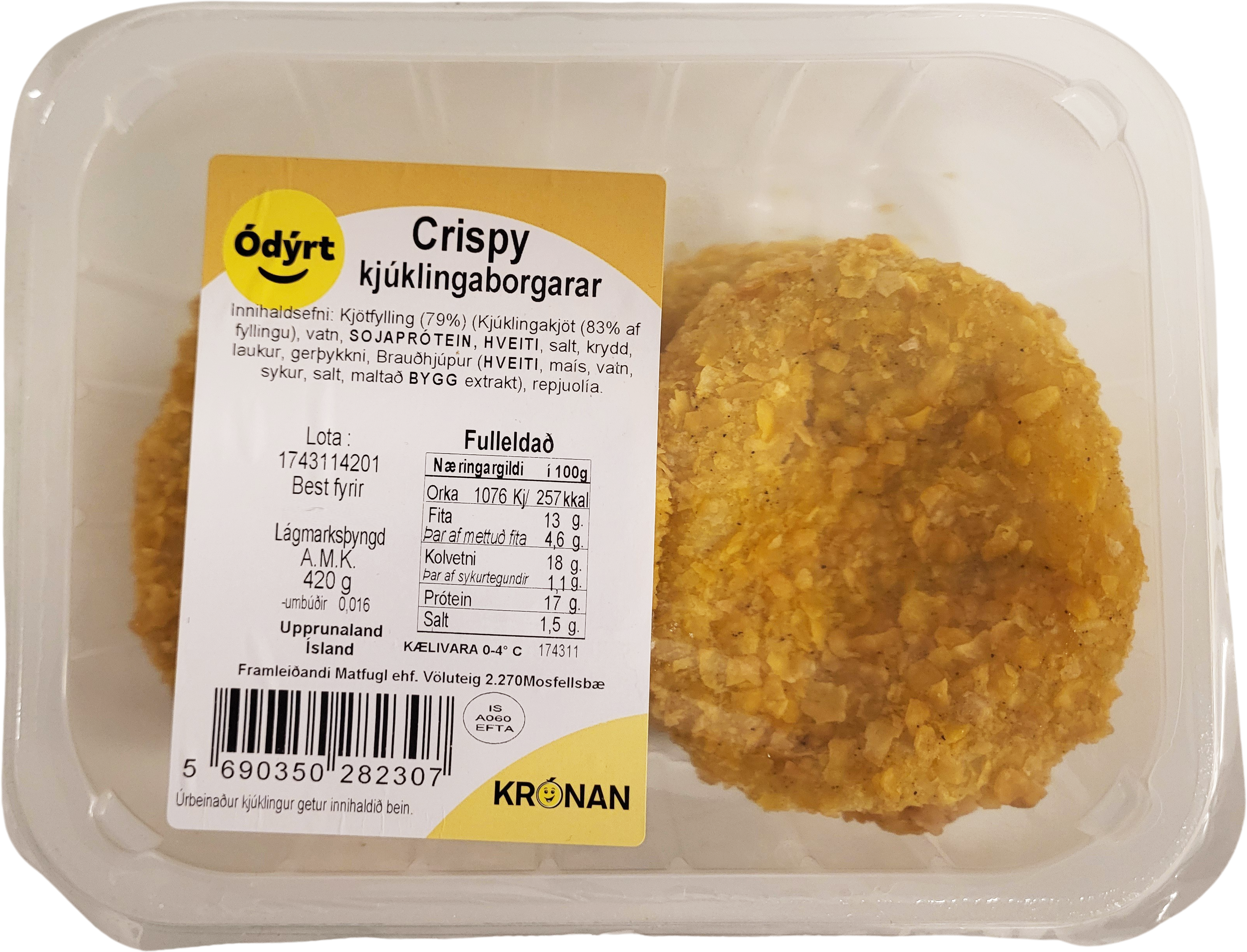 "name": "Ódýrt Crispy kjúklingaborgarar 4 stk",