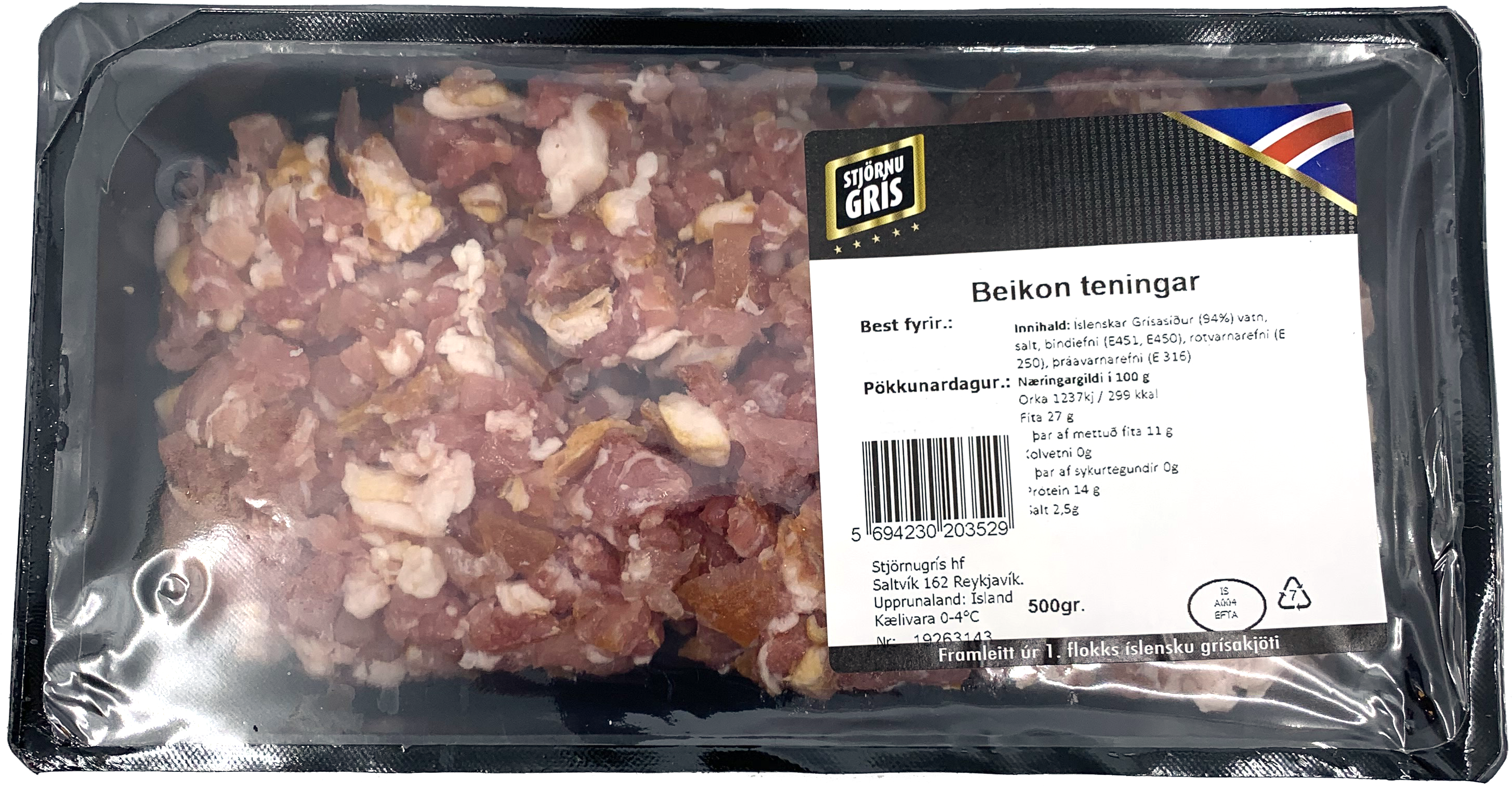 "name": "Stjörnugrís beikon teningar",