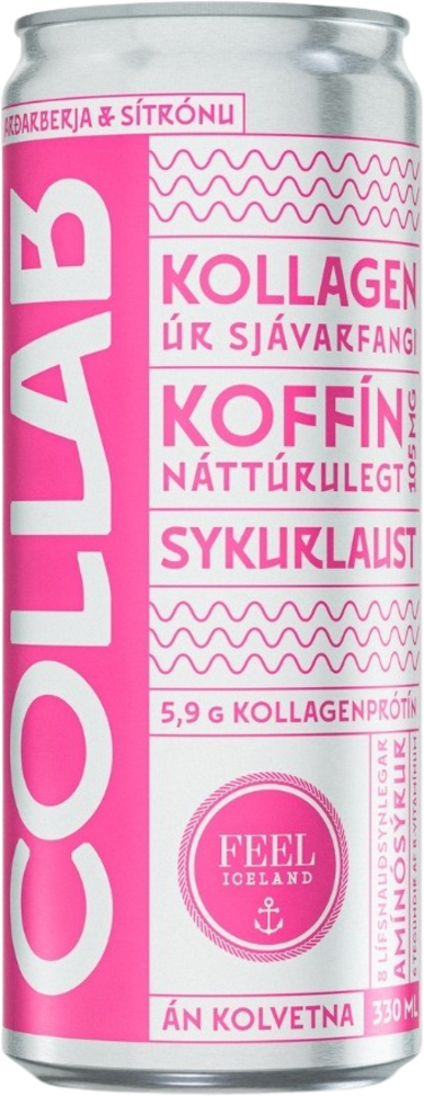"description": "Kolsýrt vatn, vatnsrofið fiski-kollagen 1,8% (glýsín, arginín, prólín, glútamínsýra, alanín, hydroxýprólín, serín, asparssýra, lýsín, þreonín, histidín, lefsín, fenýlalanín, valín, hydroxýlýsín, metíónín, ísólefsín, týrósín), sýrustillir ( sítrónusýra ), rotvarnarefni ( kalíumsorbat ), sætuefni ( súkralósi ), náttúruleg bragðefni, vítamín ( níasín (B3), pantóþensýra (B5), pýrídoxín (B6), fólasín (B9), bíótín (B7) og kóbalamín (B12) ",