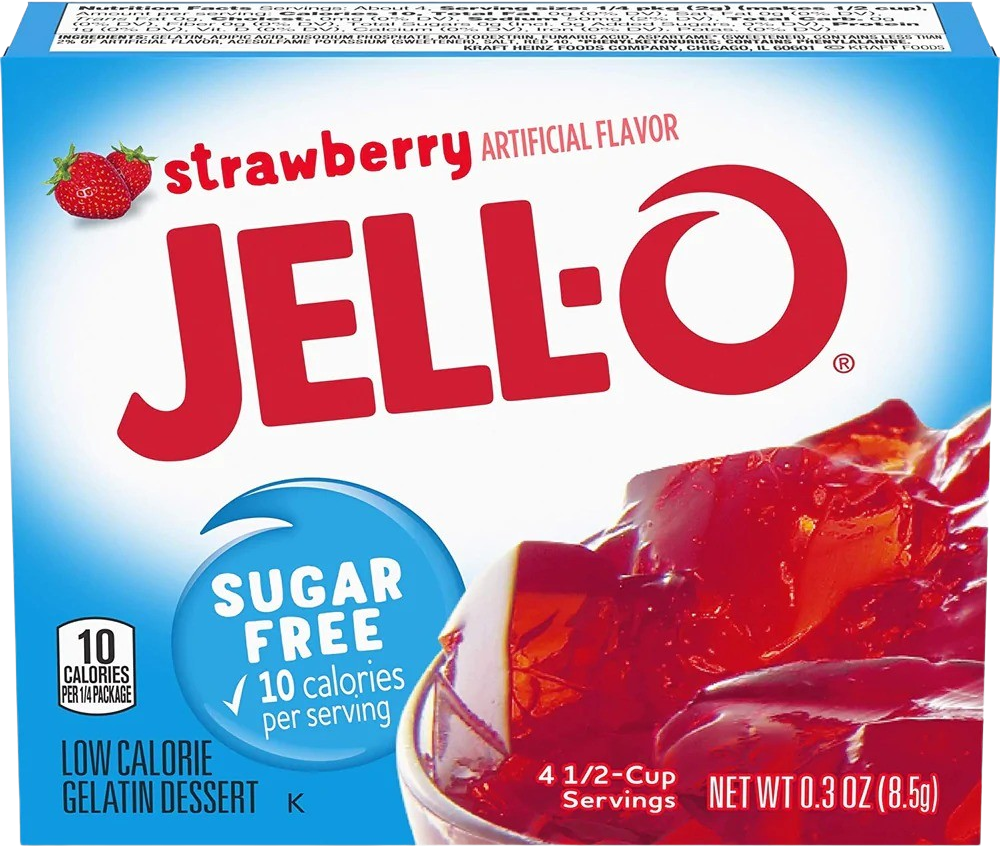 "name": "Jello sykurlaust jarðarberja",