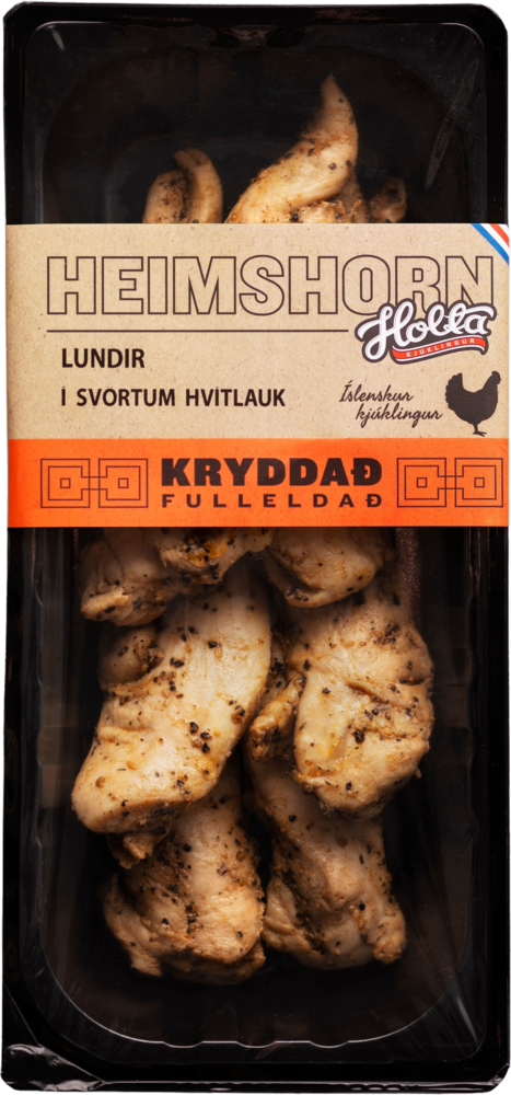 "descriptionDetail": "Mjúkar og bragðgóðar kjúklingalundir, kryddaðar með black garlic. Tilvalið i vefjuna eða takkóið. Fullelduð vara.",