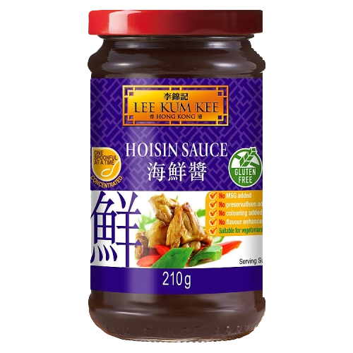 "descriptionDetail": "Hoisin Sauce\nVisit www.LKK.com for more recipe ideas.\nHoisin Sauce is a classic Chinese sauce that packed with aromatic sweet and savoury flavours. It is the secret sauce for a perfect crispy aromatic duck, great for marinating ribs and many other classic or fusion dishes. Ideal for marinades, stir-fries and sauce mixes. Also, it is Gluten free for all to enjoy!\n“Authentic taste\" from Lee Kum Kee, the number 1 Chinese sauce brand in Hong Kong, the brand used by Michelin & top Chinese chefs!\n1 Spoon at a Time\nGluten Free\nNo MSG added\nNo preservatives added\nNo colouring added\nNo flavour enhancer added\nSuitable for vegetarians and vegans\nPack size: 210G",