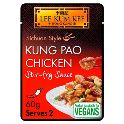 "descriptionDetail": "Kung Pao Chicken Stir-fry Sauce\nPerfect for making classic \"Kung Pao Chicken\". This distinctive spicy and piquant sauce has tantalising savoury-sweet flavours to create the authentic dish. It can be used with other meats, seafood or vegetables.\nChilli rating - 3\nSichuan style\nAlso good with: Beef, seafood or vegetables\nSuitable for vegetarians and vegans\nPack size: 60G",