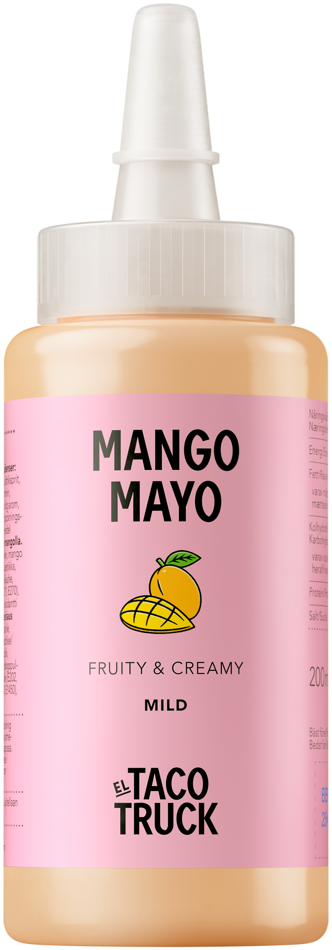 "descriptionDetail": "Rjómakennt og milt majó með mangóbragði. Hin fullkomna \njafnvægi á milli sæts og súrs, þetta er fersk viðbót við \ntaco kvöldið þitt. 100% vegan",