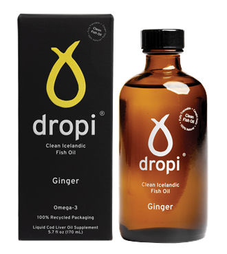 "description": "Innihald: Þorskalýsi\n\nÖnnur innihaldsefni: Náttúruleg andoxunarefni (rósmarín þykkni með náttúrulegum tókóferólum (tocopherols))\n\nAthugið að Dropi þorskalýsi er gert úr 100% náttúrulegum hráefnum og næringargildið, ásamt lit og bragði olíunnar getur verið mismunandi eftir framleiðslulotum. Næringargildið er því byggt á meðaltali.\n\nGinger (Zingiber officinale) er rót plöntunnar Zingiber oficinale sem er mikið notuð sem krydd til að bæta bragð við matreiðslu eða sem þjóðlækning. Lífræna, ferska engiferolían í Dropa gefur olíunni mjúkt og ferskt bragð með góðu sítrus eftirbragði.\n\nNotkun: 1 teskeið (5ml) á dag. Ef þú ert barnshafandi, með barn á brjósti, með ofnæmi fyrir fiski eða þjáist af langvinnum veikindum mælum við með að þú fáir faglega ráðgjöf hjá viðeigandi heilbrigðisstarfsfólki.\n\nVarúð/Varist: Geymið þar sem börn ná ekki til. Innbyrðið ekki meira en ráðlagðan dagskammt. Fæðubótarefni ætti ekki að koma í staðinn fyrir fjölbreytt mataræði.\n\nGeymsla: Geymist í ísskáp fyrir langvarandi ferskleika. Geymist í 3 mánuði í ísskáp eftir opnun.",