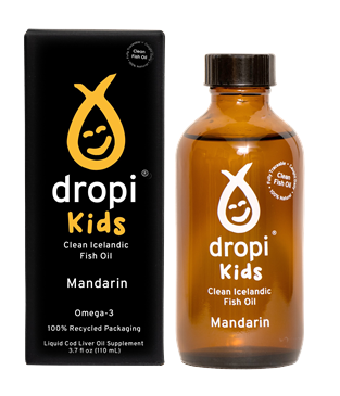 "description": "Innihald: Þorskalýsi\n\nÖnnur innihaldsefni: Náttúruleg andoxunarefni (rósmarín þykkni með náttúrulegum tókóferólum (tocopherols))\n\nAthugið að Dropi þorskalýsi er gert úr 100% náttúrulegum hráefnum og næringargildið, ásamt lit og bragði olíunnar getur verið mismunandi eftir framleiðslulotum. Næringargildið er því byggt á meðaltali.\n\nMandarin orange (Citrus reticulata) er lítill sítrus ávöxtur. Í hefðbundinni kínverskri læknisfræði er þurrkað hýði af ávöxtum notað til að auka meltinguna. Þessi lífræna olía kemur frá fersku, þurrkuðu hýði af mandarínum. Bragðið er talið sætara og sterkara en af venjulegri appelsínu.\n\nNotkun: 1/3 teskeið (1.5ml) á dag fyrir börn á aldrinum 2-9 ára. \n\nVarúð/Varist: Geymið þar sem börn ná ekki til. Innbyrðið ekki meira en ráðlagðan dagskammt. Fæðubótarefni ætti ekki að koma í staðinn fyrir fjölbreytt mataræði.\n\nGeymsla: Geymist í ísskáp fyrir langvarandi ferskleika. Geymist í 3 mánuði í ísskáp eftir opnun.",