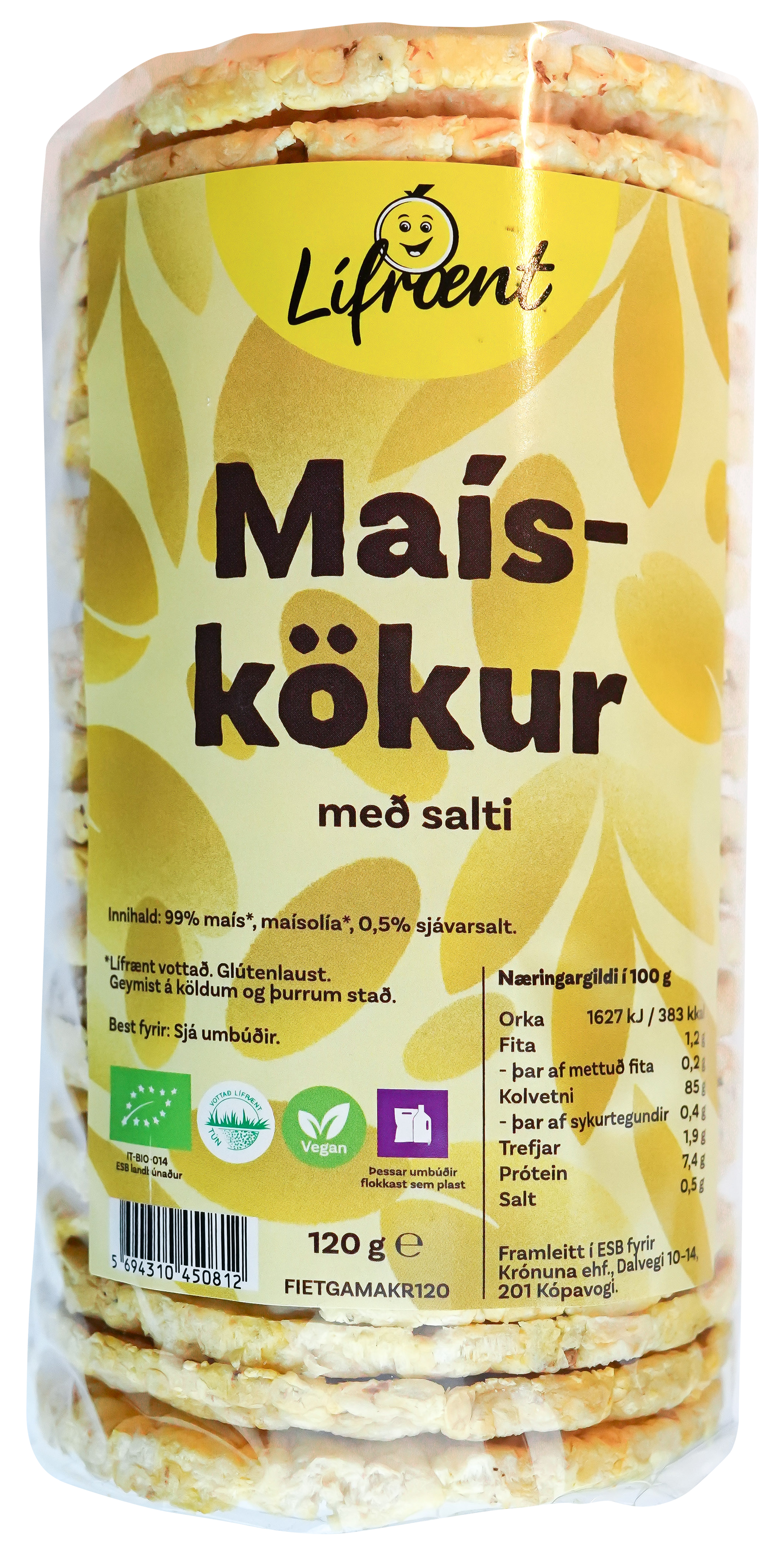 "name": "Krónan lífrænt maískökur salt",