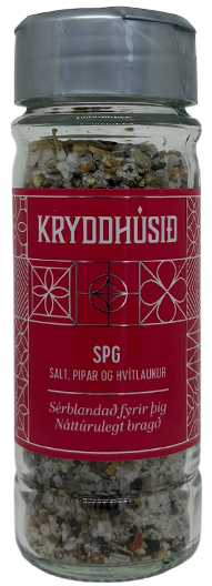 "descriptionDetail": "„SPG“ stendur fyrir klassísku blönduna „salt, pipar og hvítlaukur (garlic)“. \nÞessi kryddblanda ætti að vera til á öllum heimilum því hún hentar má segja í allan mat, hvort sem það er kjöt eða grænmeti.\nSPG er meðal annars frábær á naut, lamb, kjúkling, maíis, rótargrænmeti, bakaðar kartöflur og egg. ",