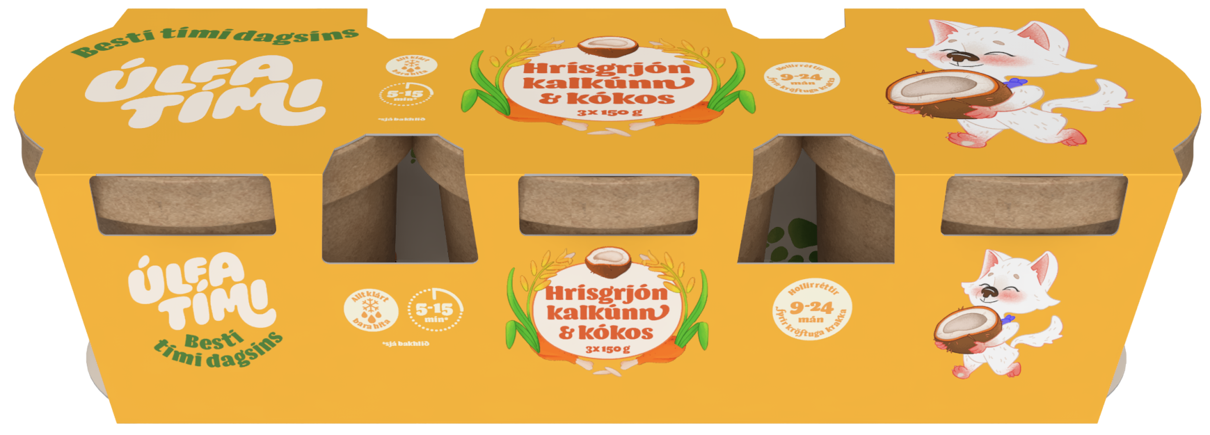 "description": "Kalkúnakjöt (20%), kókosmjólk (20%), hýðishrísgrjón (20%), grasker, gulrætur, laukur, vatn, kókosolía (1%), timían, túrmerik.",