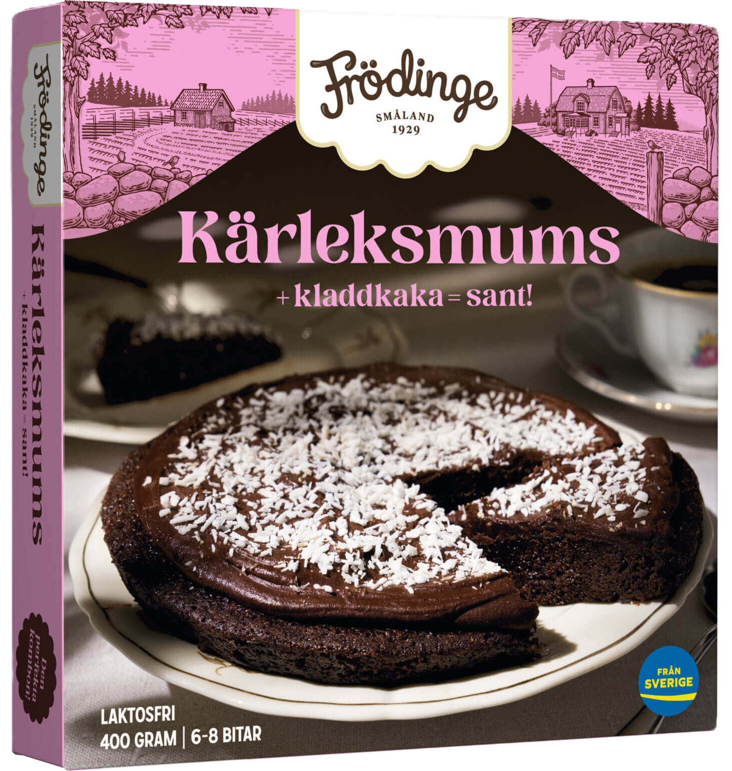 "descriptionDetail": "Vinsælasta klassíkin frá Frödinge í glænýrri útgáfu. Súkkulaði mokka kladdkaka með mjúkum súkkulaðibotni og glassúr. Toppuð með kókos.",