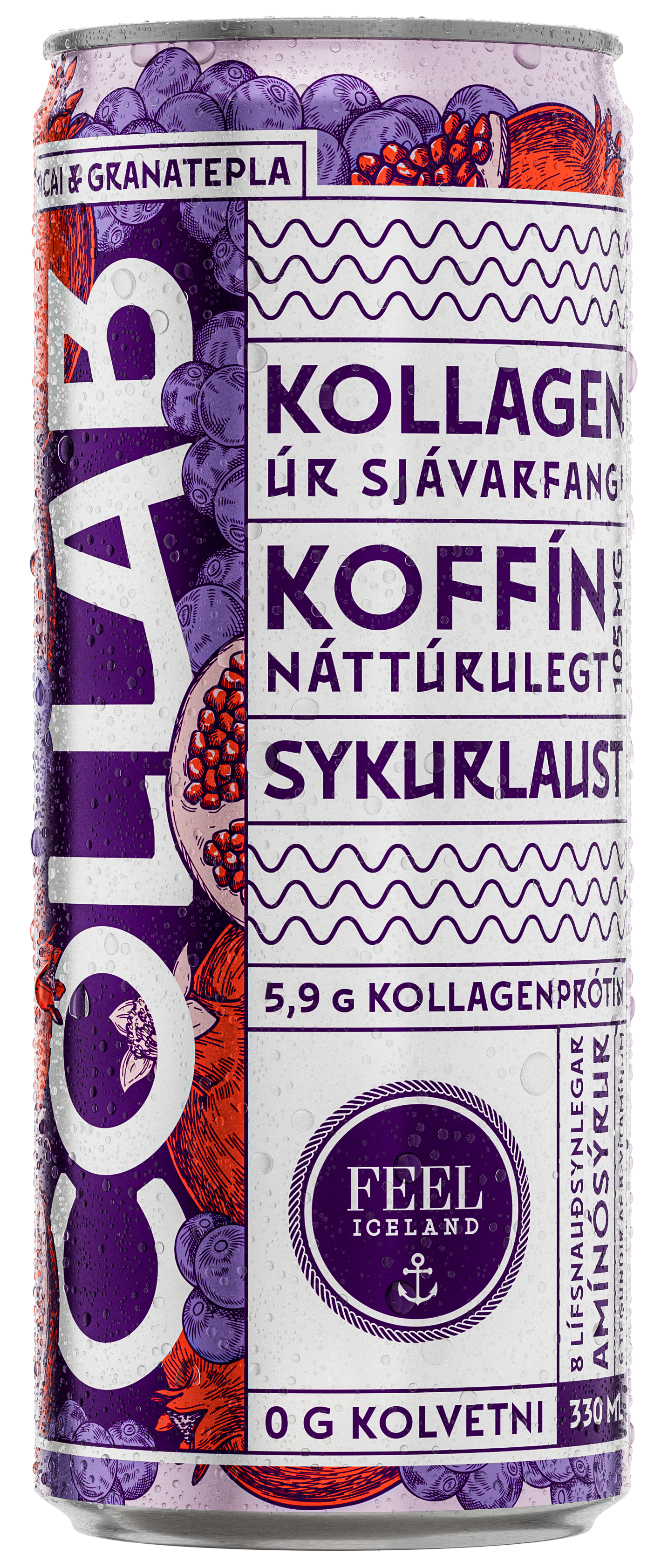 "descriptionDetail": "COLLAB er frískandi drykkur með ríkulegu magni af virkum efnum án allra kolvetna og sykurs. Hver dós inniheldur 105mg koffín og 6 mismunandi B-vítamín auk 5.9g af kollageni, eins umtalaðasta fæðubótarefni okkar tíma. Kollagenið í COLLAB inniheldur 18 mismunandi amínósýrur og kemur frá FEEL Iceland.",